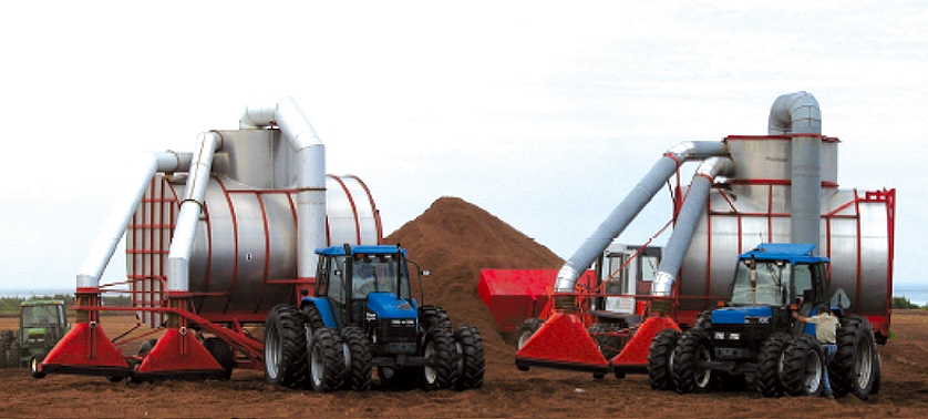 To harvest peat moss, ditches are plowed across the bog to allow the top layer to drain and dry. Once dry, the surface is raked to loosen the peat. Afterward, large vacuums are driven over the bog to collect the loosened peat moss, which is then taken to our production facility for packaging and distribution to consumers.